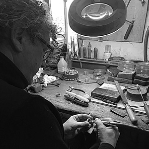 Paul was inspired to make jewellery whilst travelling in Asia & has been working as a self taught designer jeweller for over 25 years. He lived in North Cornwall for several years, before relocating to Southern France with his family in 2009. Working alone in the solitude of his rural workshop Paul draws on his technical abilities to undertake all aspects involved in the design and fabrication of his work (apart from casting). He creates indulgent & interesting pieces & incorporates imaginative & bold settings with no constraints on design.