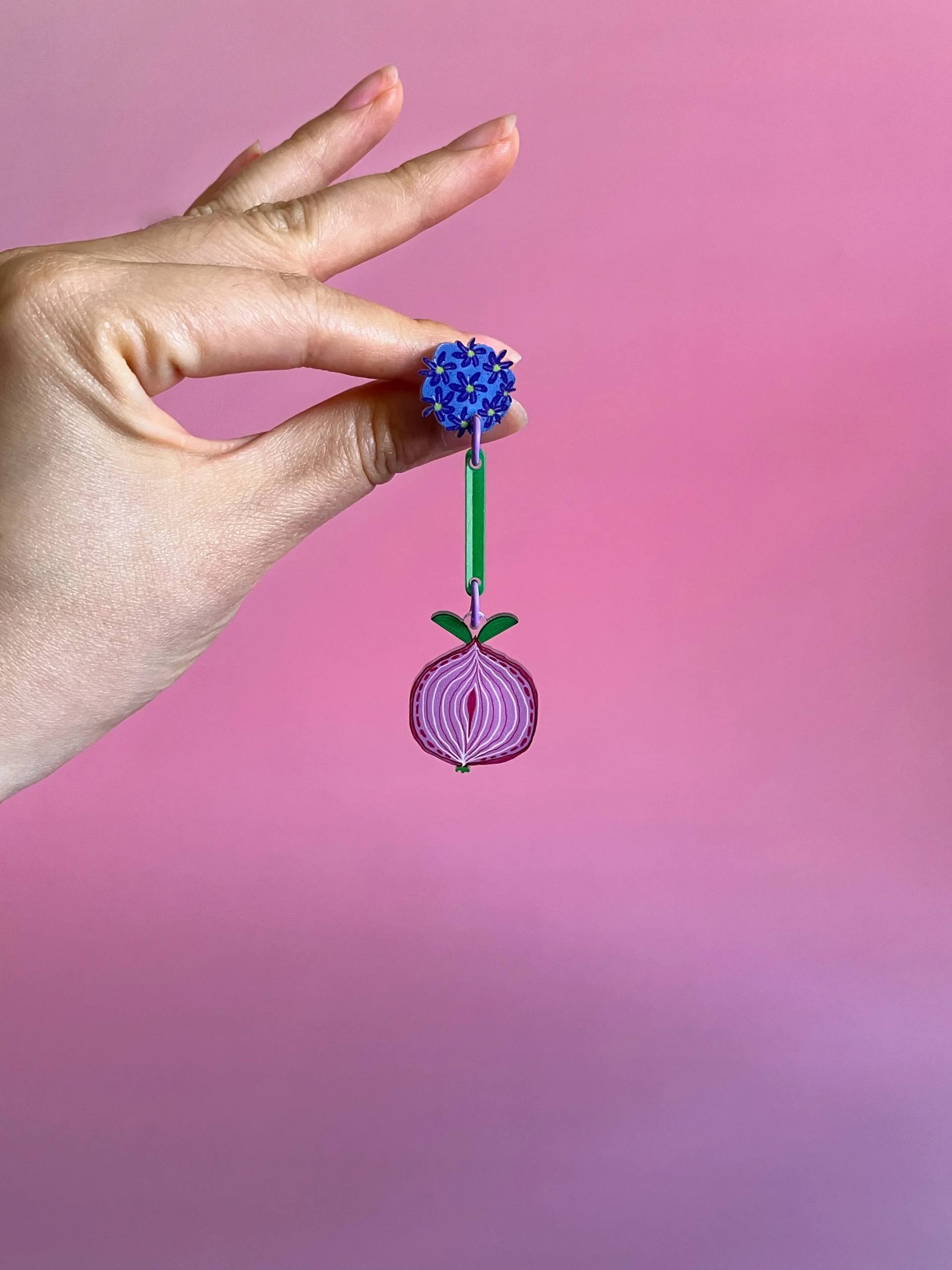 Matching wearables to the Giant Onion print. Made with acrylic and sterling silver posts. Super lightweight.