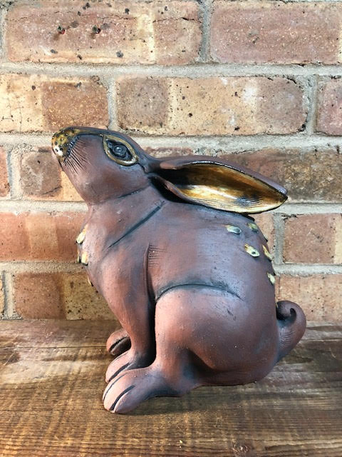This beautiful hare, hand-built from stoneware clay, is a one-off piece by Jan Beeny, an artist based in Cardiff. This statement piece is fired to mid earthenware temperatures and is suitable for indoor display.