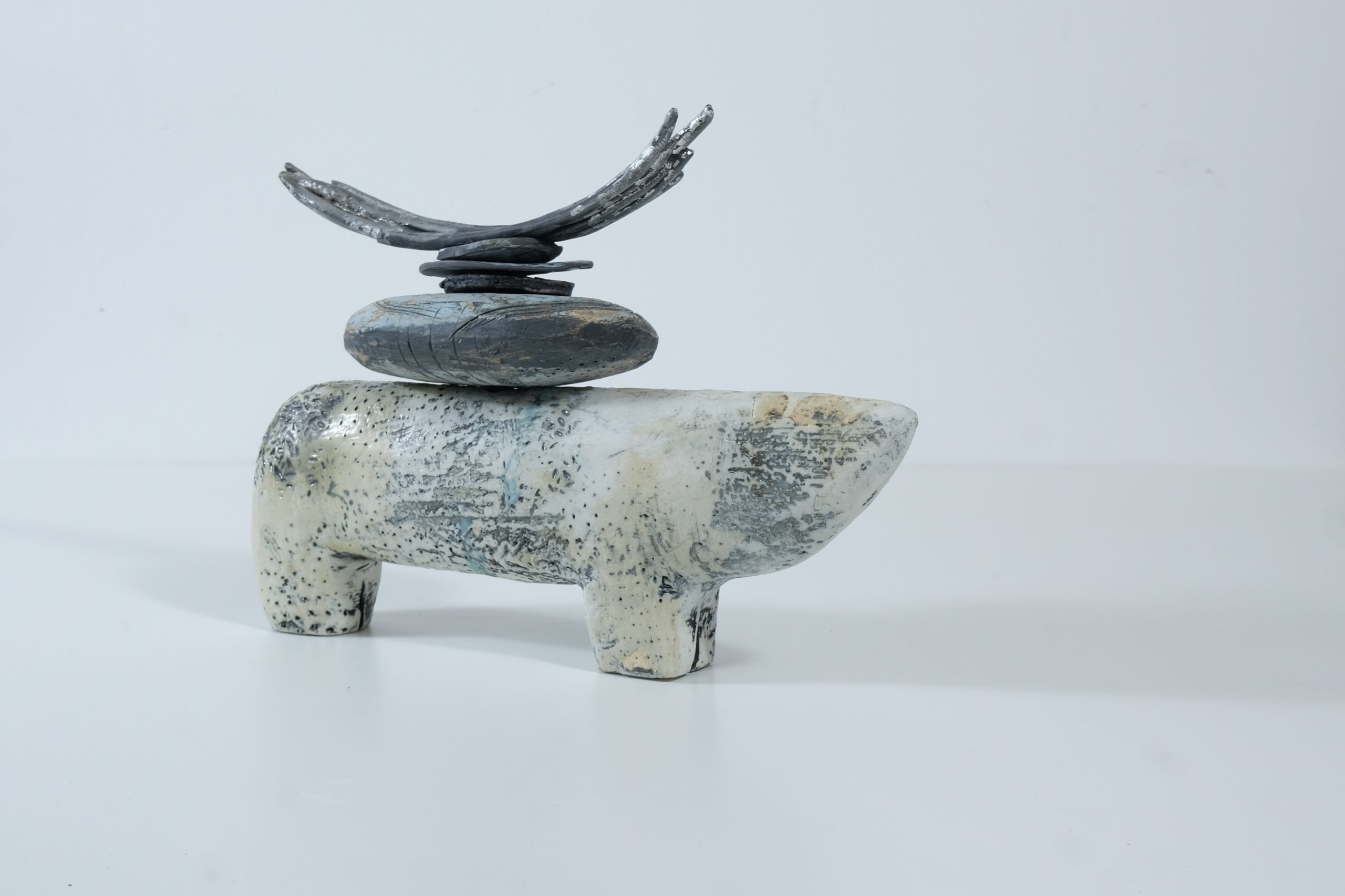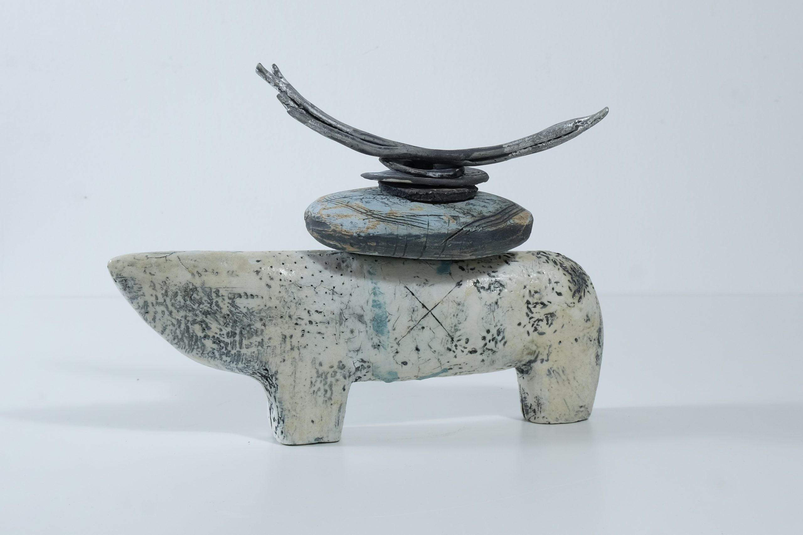 This one reminds me of her stacks that we have displayed before, where elements if pebble’s are stacked on the back of the animal.