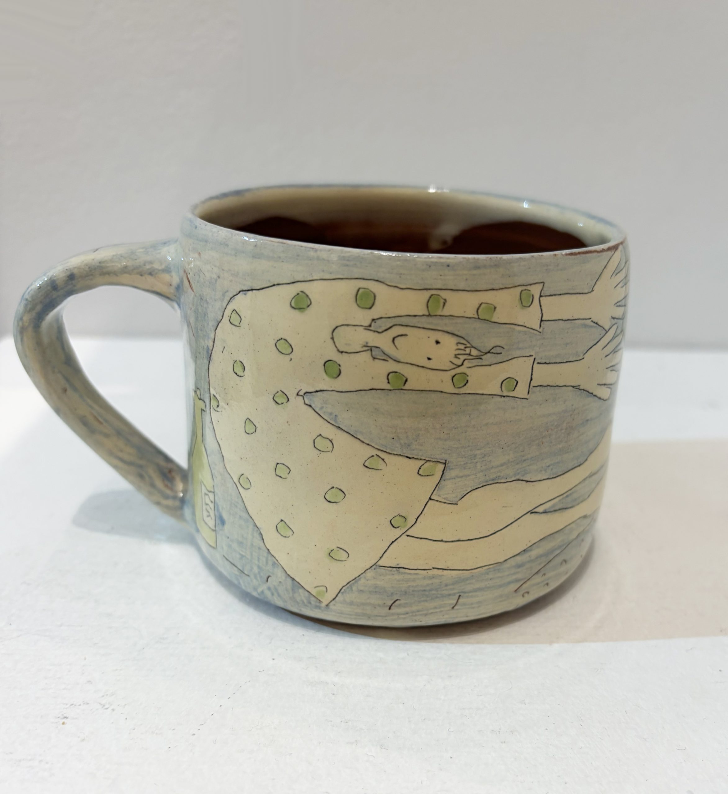 This mug by Vivienne Ross is bound to make anyone smile. The mug can be used daily as a treasured coffee or tea mug, and is the perfect size for going under a coffee   machine.