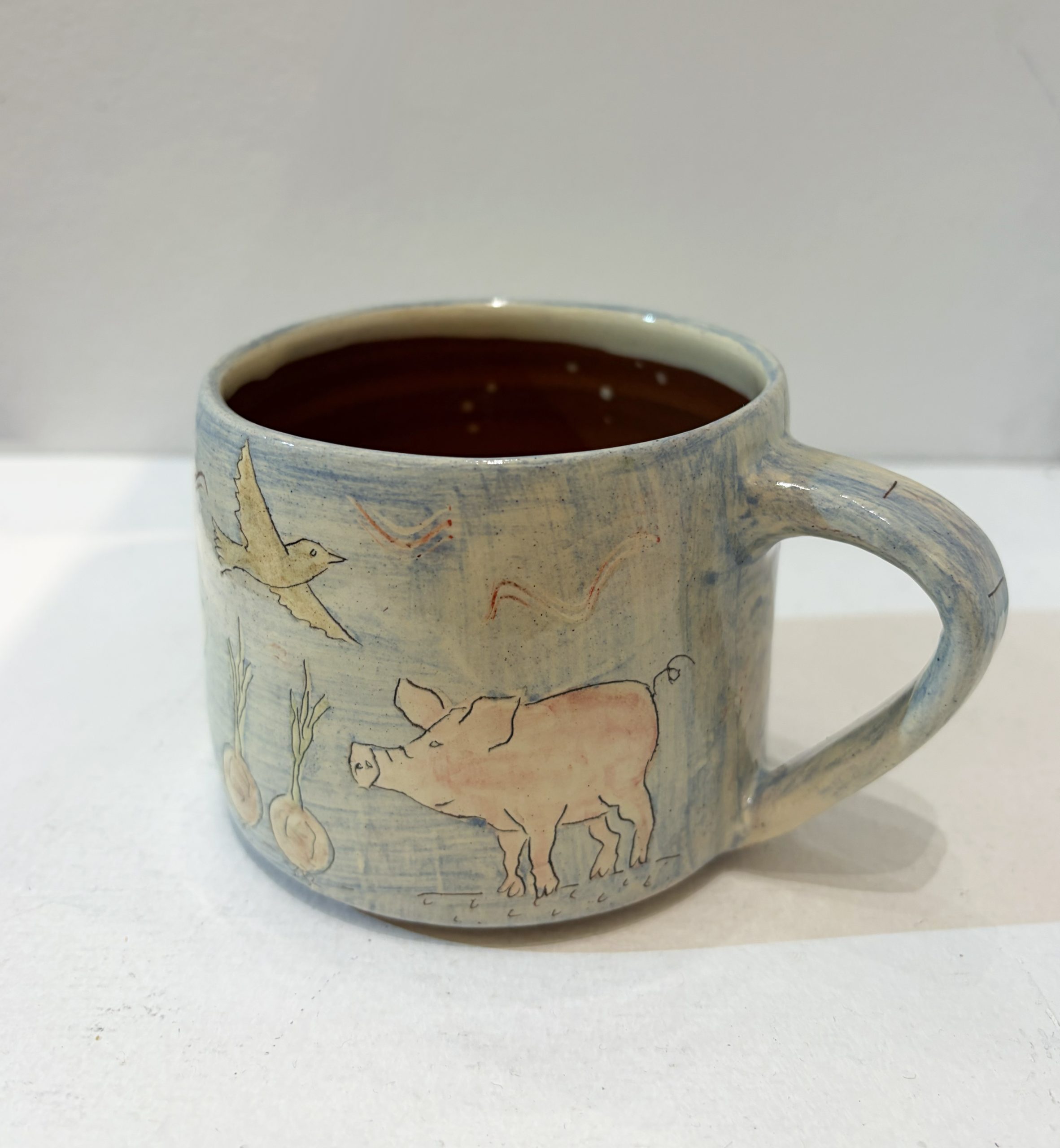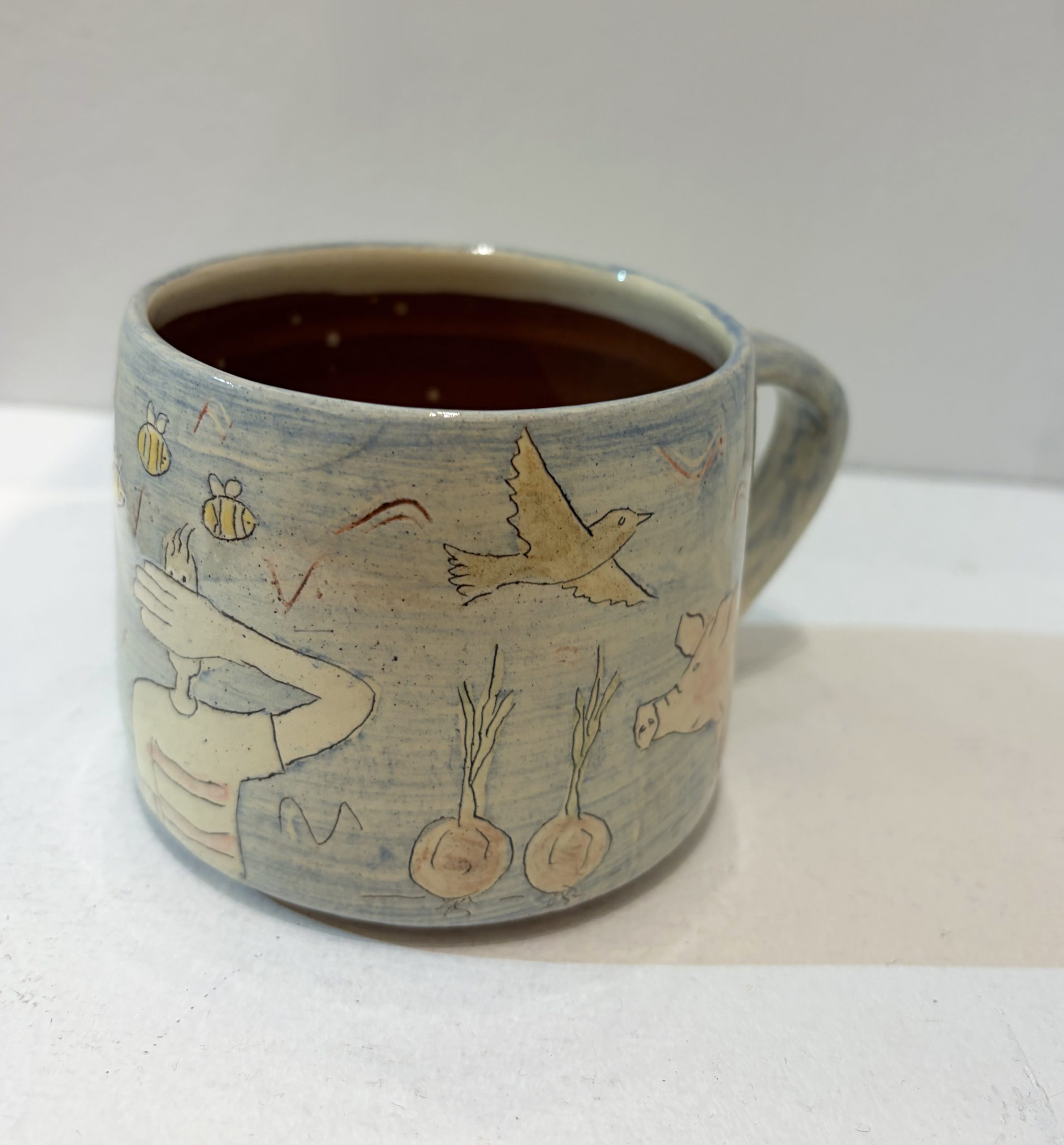 Dancing around the farm, blue mug