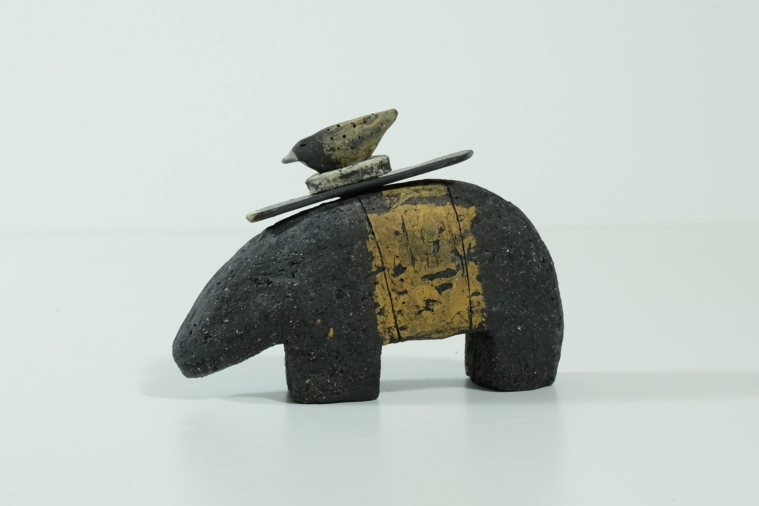 Hand built ceramic creature by Scarborough based artist Shirley Vauvelle. One of a kind made from stoneware clay glazed with imprinted patterned detail