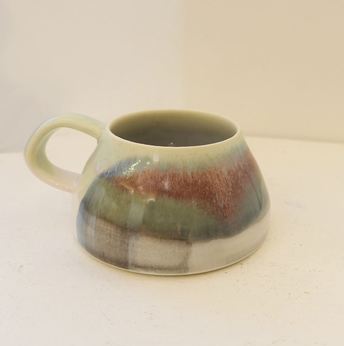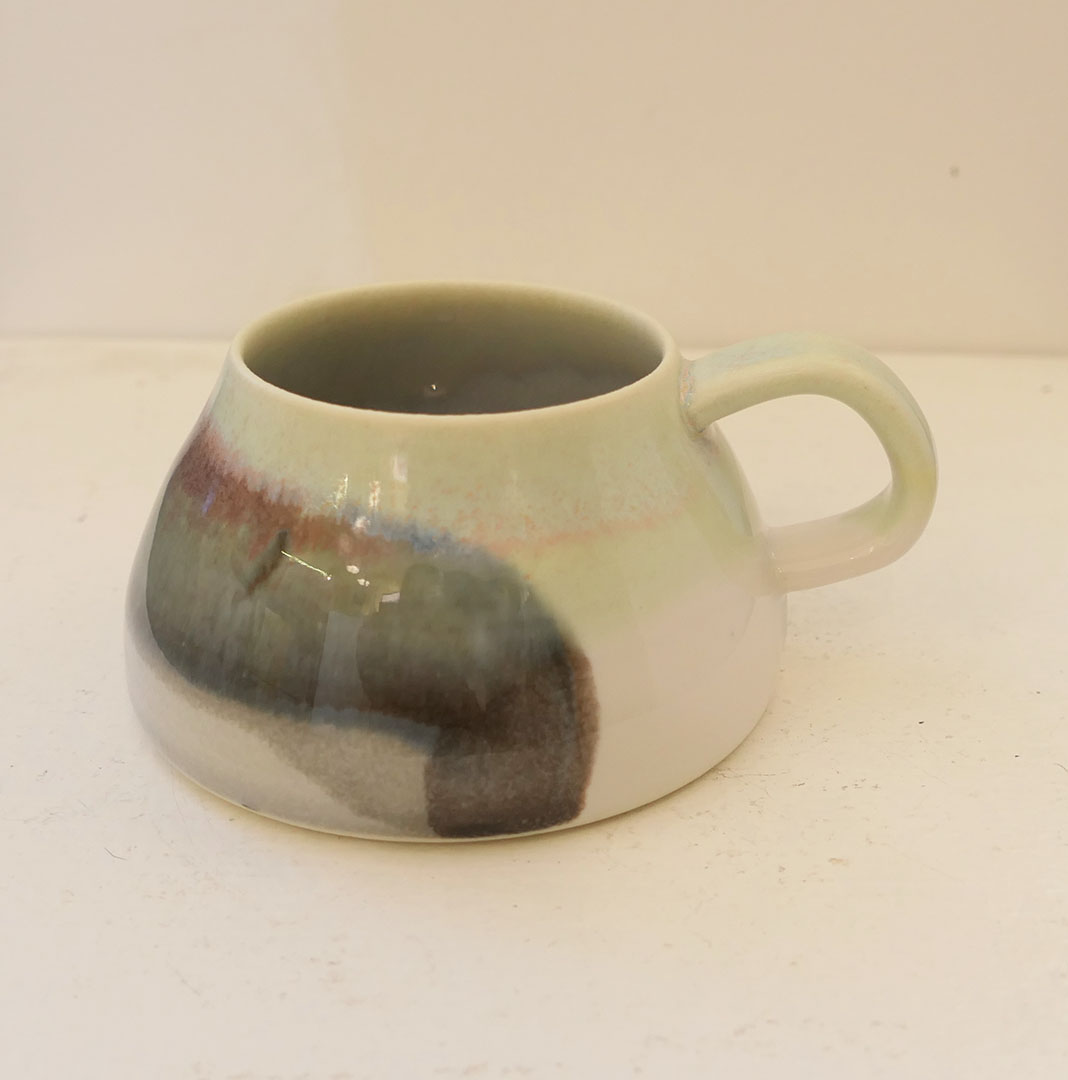 A beautiful expresso mug, that is wheel thrown by local potter Rebecca Callis based in Kendal. We love the abstract/ landscape mark making that Rebecca has created on these mugs referencing the local landscape.