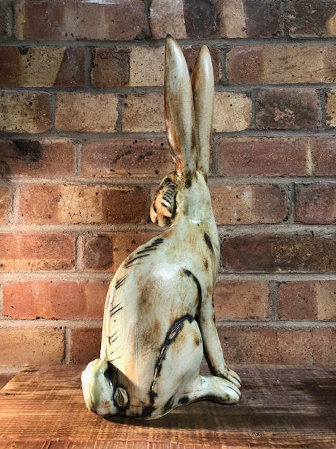 This elegant hare, hand-built from stoneware clay, is a one-off piece by Jan Beeny, an artist based in Cardiff. This statement piece is fired to mid earthenware temperatures and is suitable for indoor display.
