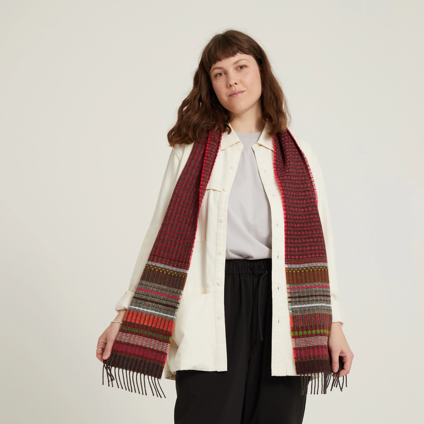 Wallace Sewell have created an eye-catching classic style scarf in their lambswool range, using a palette of playful, contemporary hues and featuring a variety of patterns.