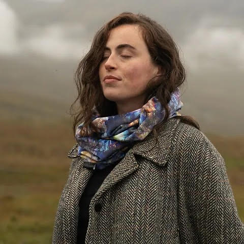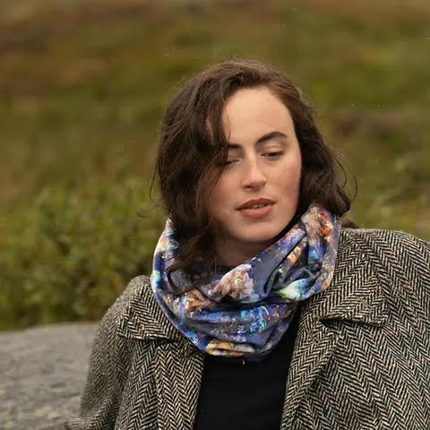 A beautifully soft, plush velvet infinity scarf featuring the print ‘LABRADORITE’, a brand new design for 2024. Featuring microscopic imagery of the mineral of the same name. Labradorite is often compared to the Aurora Borealis and inspired the colour palette.