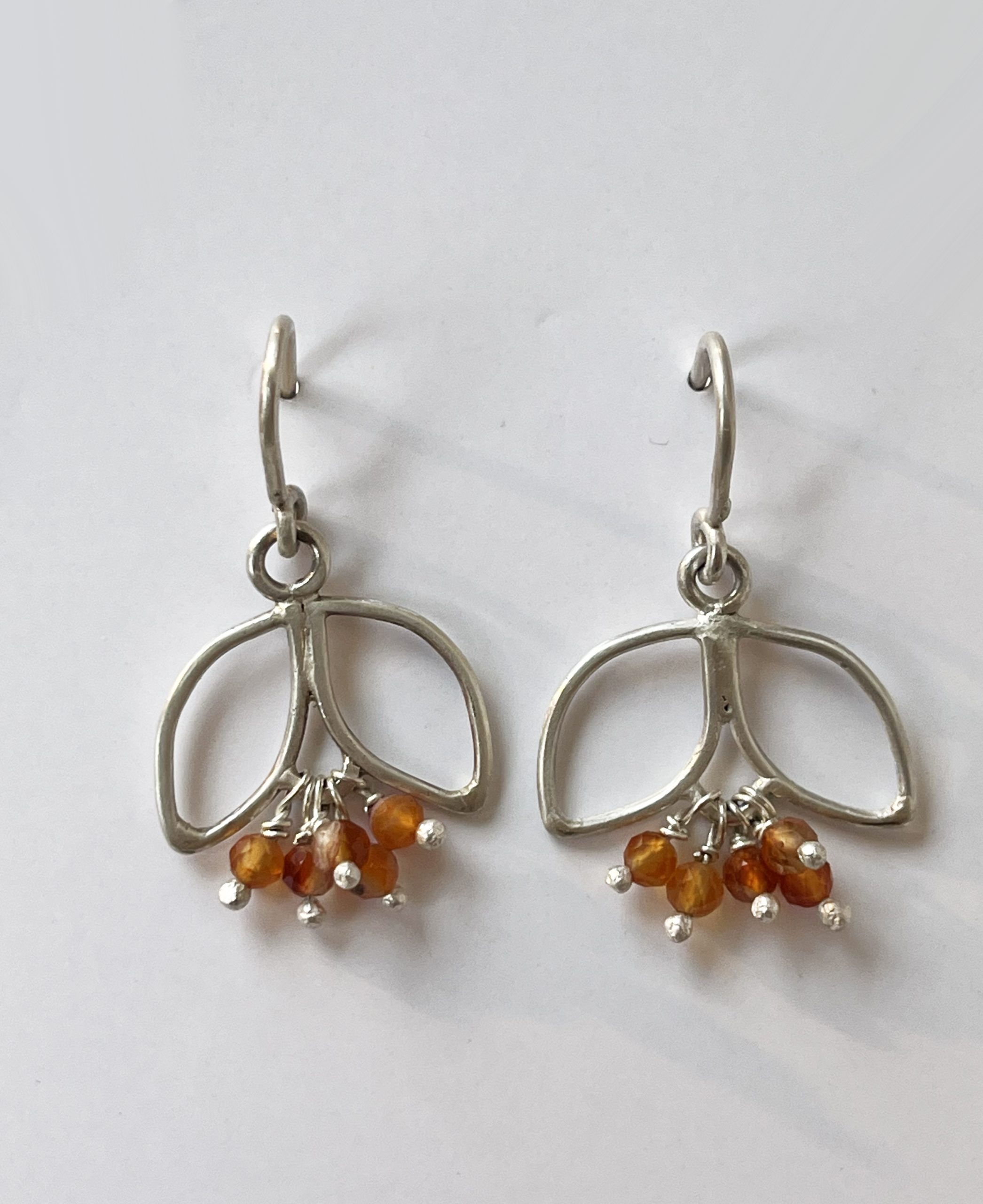 A little splash of colour this summer with these small drop earrings in sterling silver with a cluster of carnelian beads