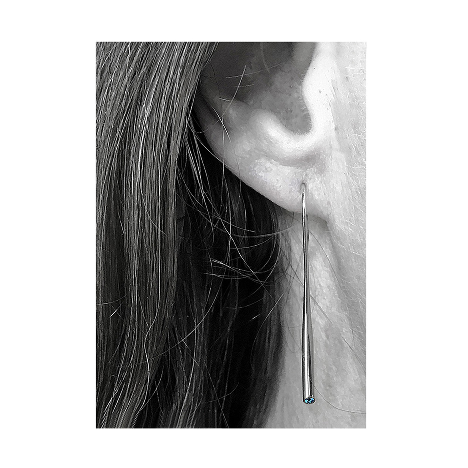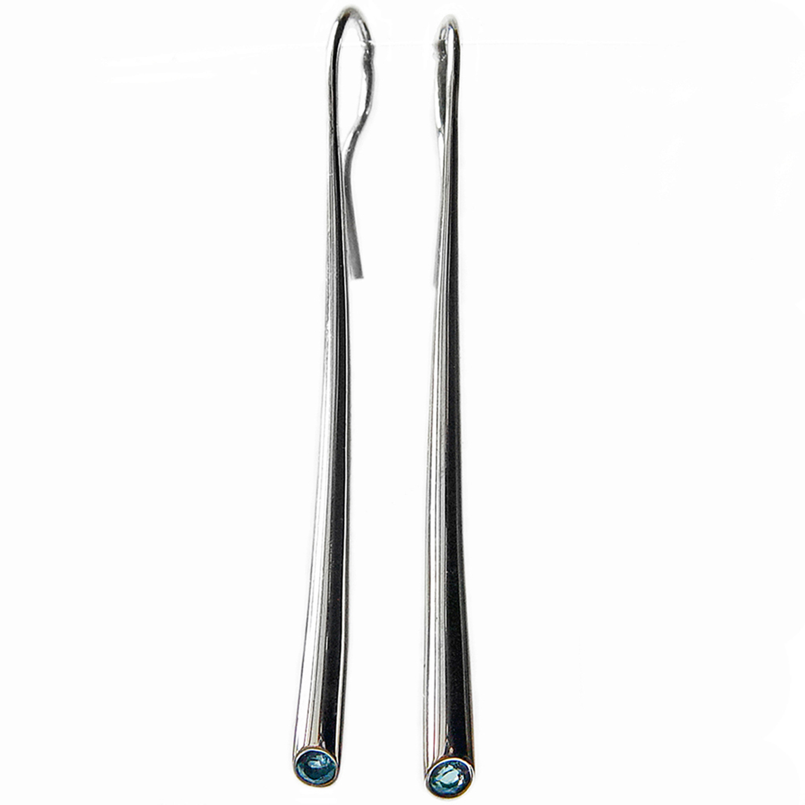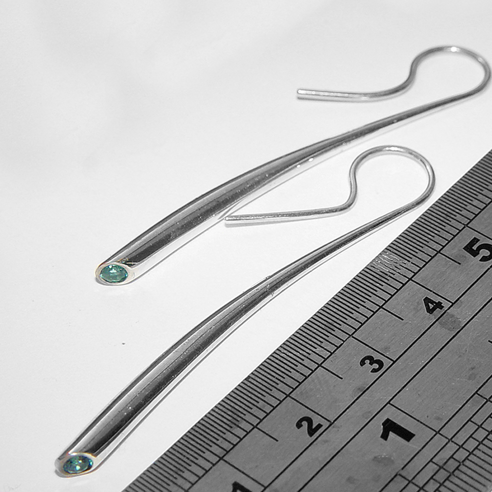 Elegant short wiggly drop earrings set with 2mm blue topaz. The solid silver earrings taper from 3mm and are approx 54mm long. A beautiful pure design.