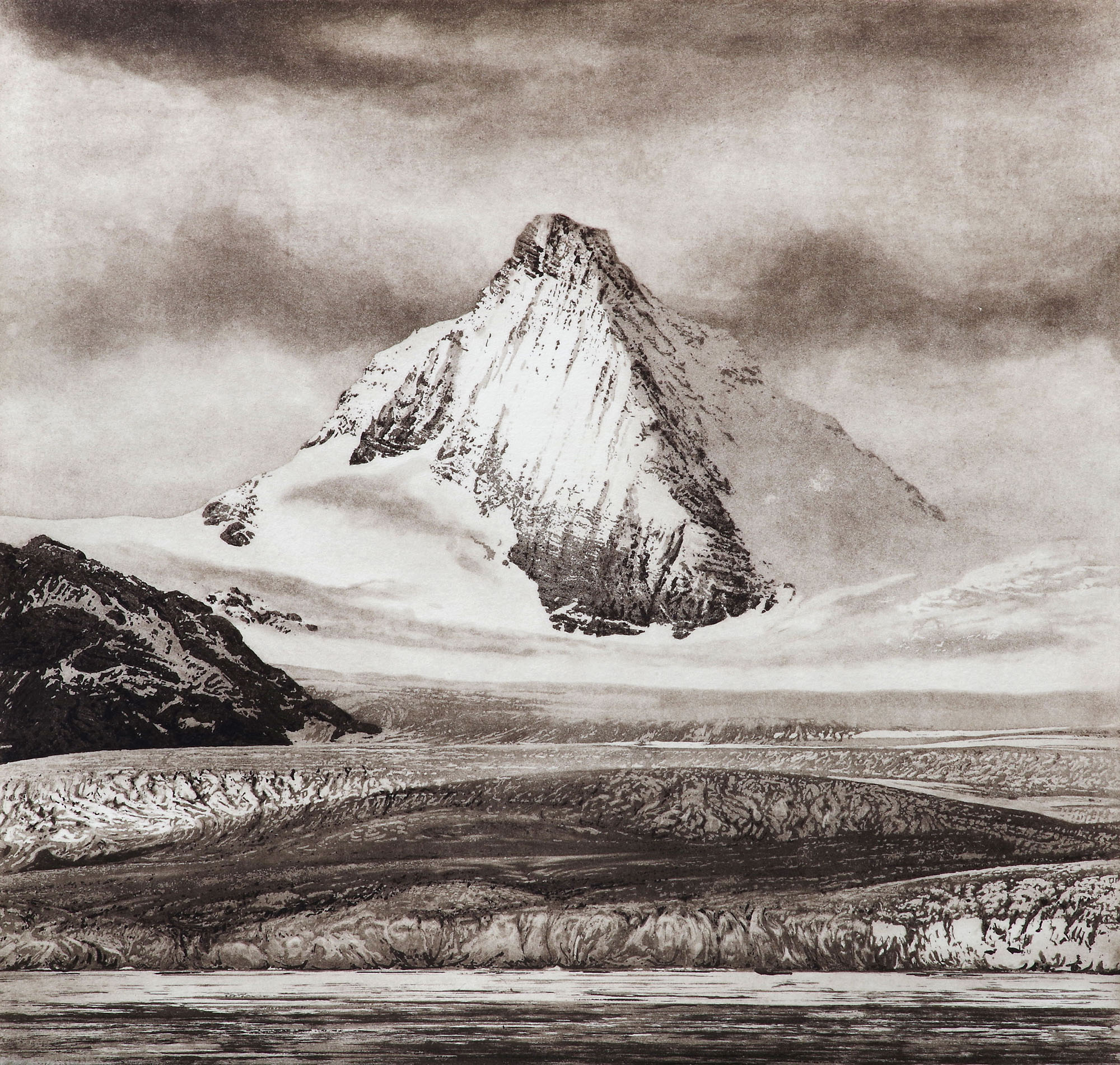 Ian’s Etching’s capture the beautiful soft detail’s often found within nature. Soft grasses and iceberg covered glaciers that are captured in a strong sense of detail, by engraved mark making into copper plates and then inking these up to create tonal depth within areas.
