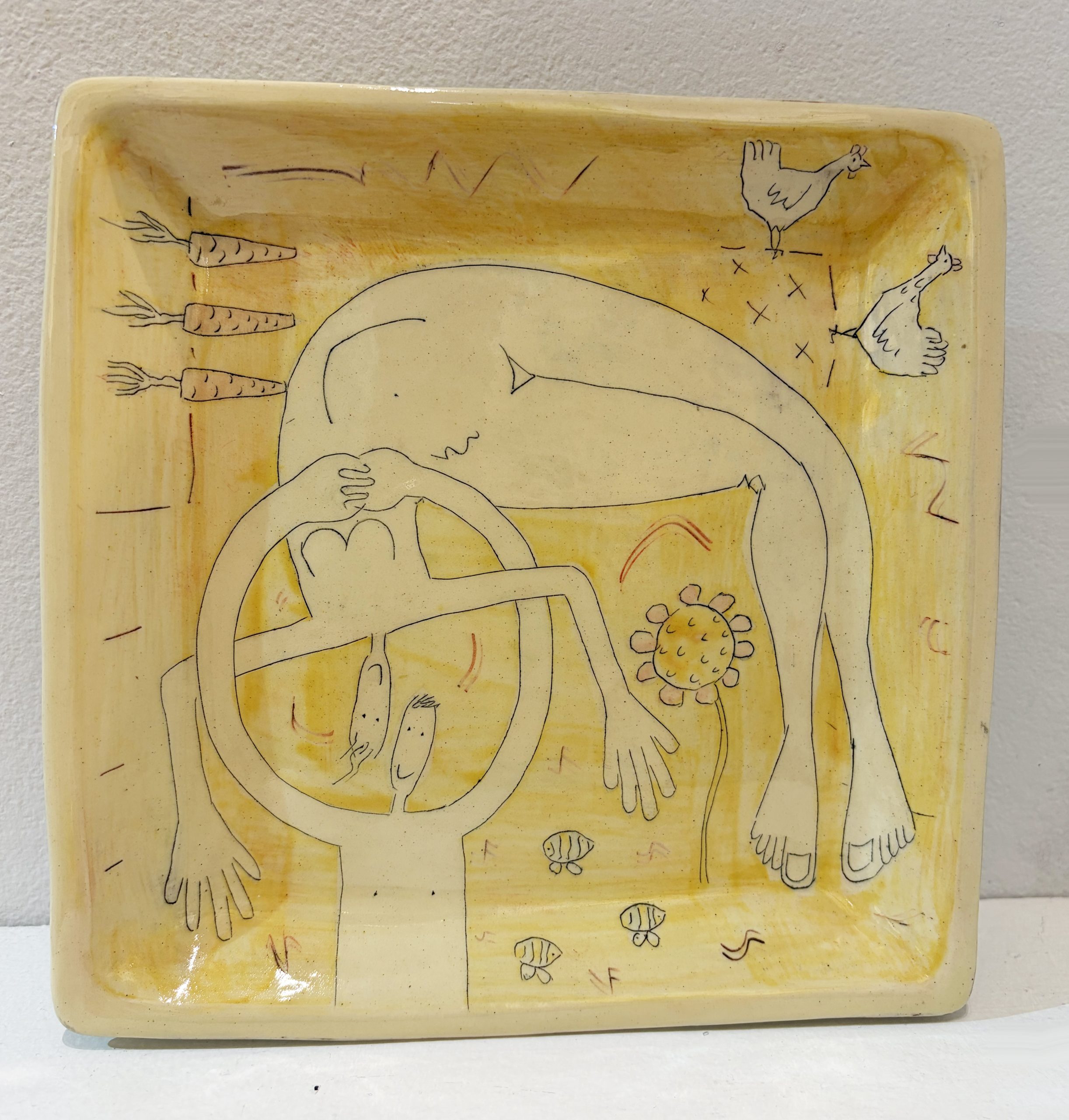 This square platter dish by Vivienne Ross are bound to make anyone smile. The dish can be used to display food and also can be hung on the wall