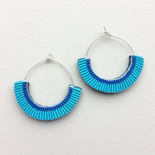 Beautifully crafted earrings from an exclusive collection, combining vintage braids with contemporary colours and recycled silver. Sourced from across Europe, each piece is infused with its own unique history and reframed in a distinctive modern style. This collection consists of one-off treasures and limited edition design
