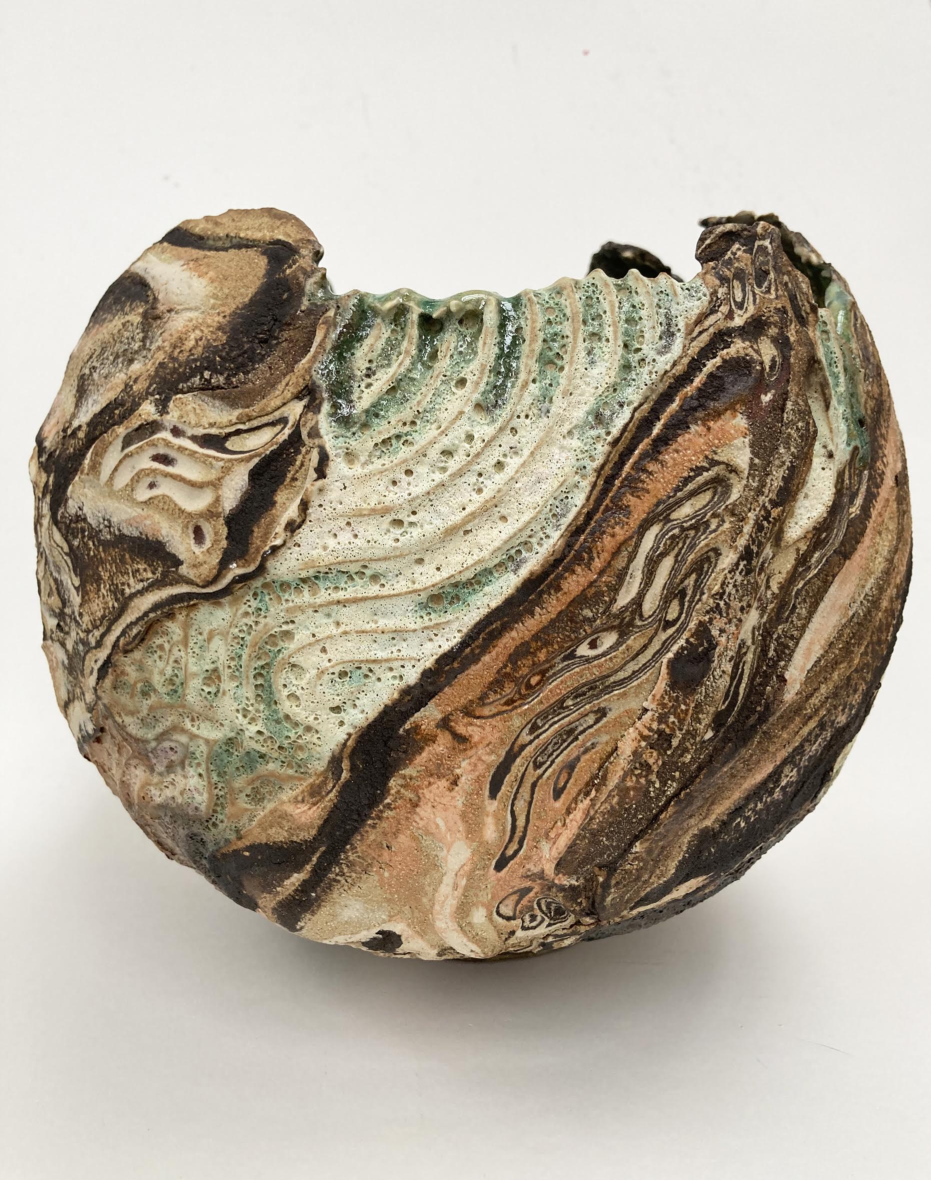 A beautiful large scale vessel capturing the movement of the rugged seashore landscape of the Isle of Lewis.