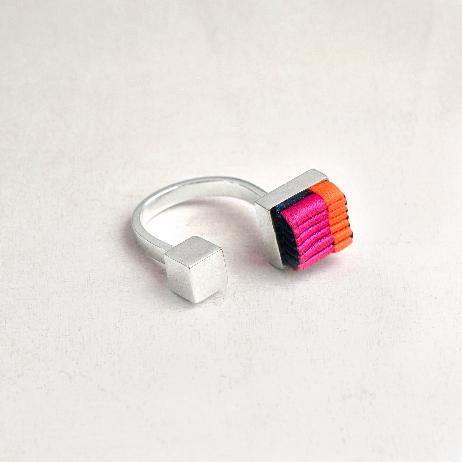 A beautifully crafted ring from an exclusive collection, combining vintage braids with contemporary colours and recycled silver. Sourced from across Europe, each piece is infused with its own unique history and reframed in a distinctive modern style. This collection consists of one-off treasures and limited edition design