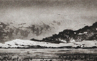 Ian’s Etching’s capture the beautiful soft detail’s often found within nature. Soft grasses and iceberg covered glaciers that are captured in a strong sense of detail, by engraved mark making into copper plates and then inking these up to create tonal depth within areas.